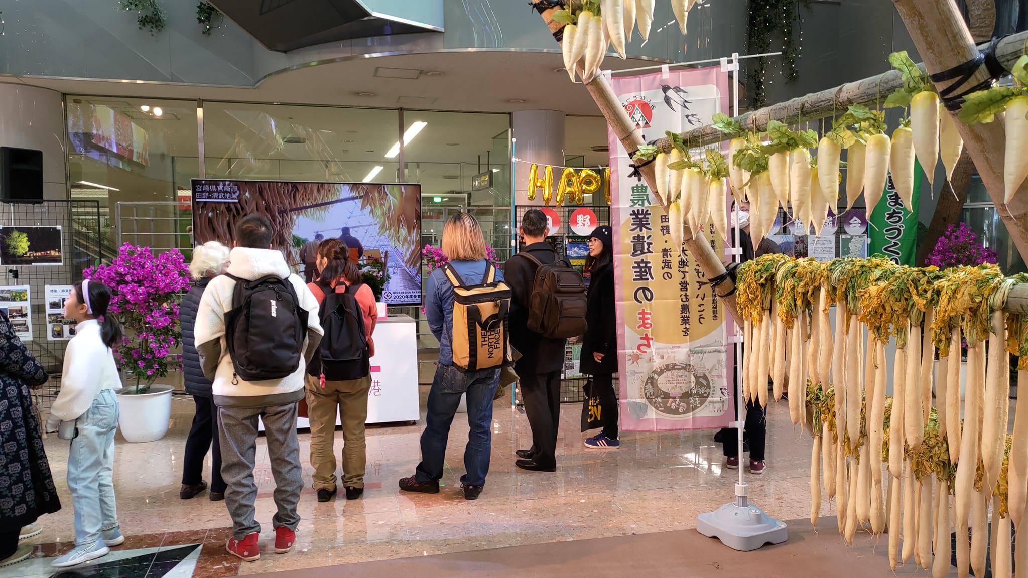 宮崎ブーゲンビリア空港「田野・清武 冬の風物詩 大根やぐら展」にてVR動画展示をさせていただきました。 田野清武地域日本農業遺産が主催する、宮崎ブーゲンビリア空港「田野・清武 冬の風物詩 大根やぐら展」にて、ドローンと360°カメラを使用した360°自由視点で視聴可能なVR映像展示をさせていただきました。 映像は地上1mから30mまでの飛行映像や大根やぐらを地上視点や上空視点など大根やぐらとその農業風景を迫力のVR映像で楽しめるコンテンツとして提供いたしました。 この他、写真展示と大型モニターによる映像展示、みやざき犬を採用し制作した顔はめパネルも同時に実施いたしました。